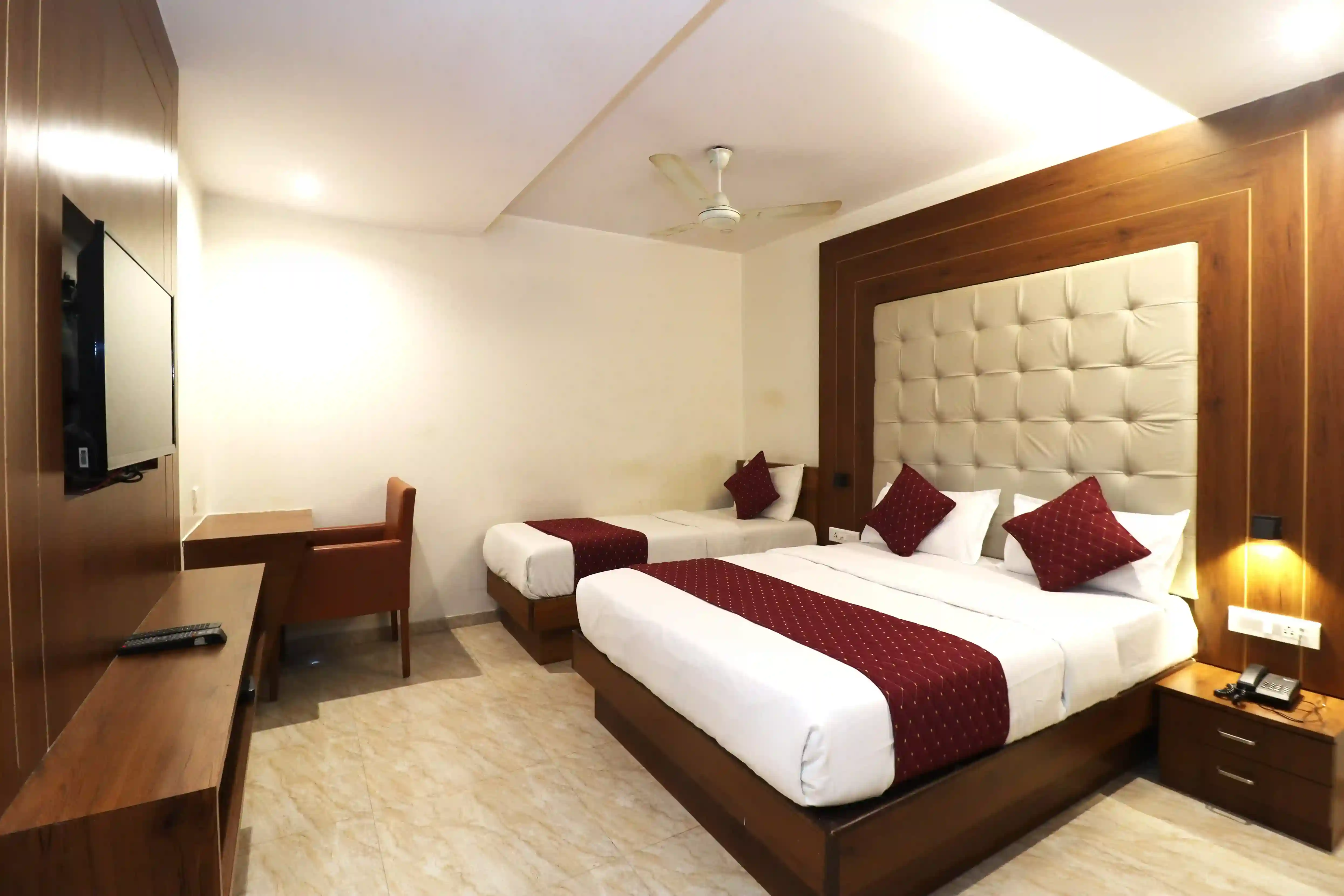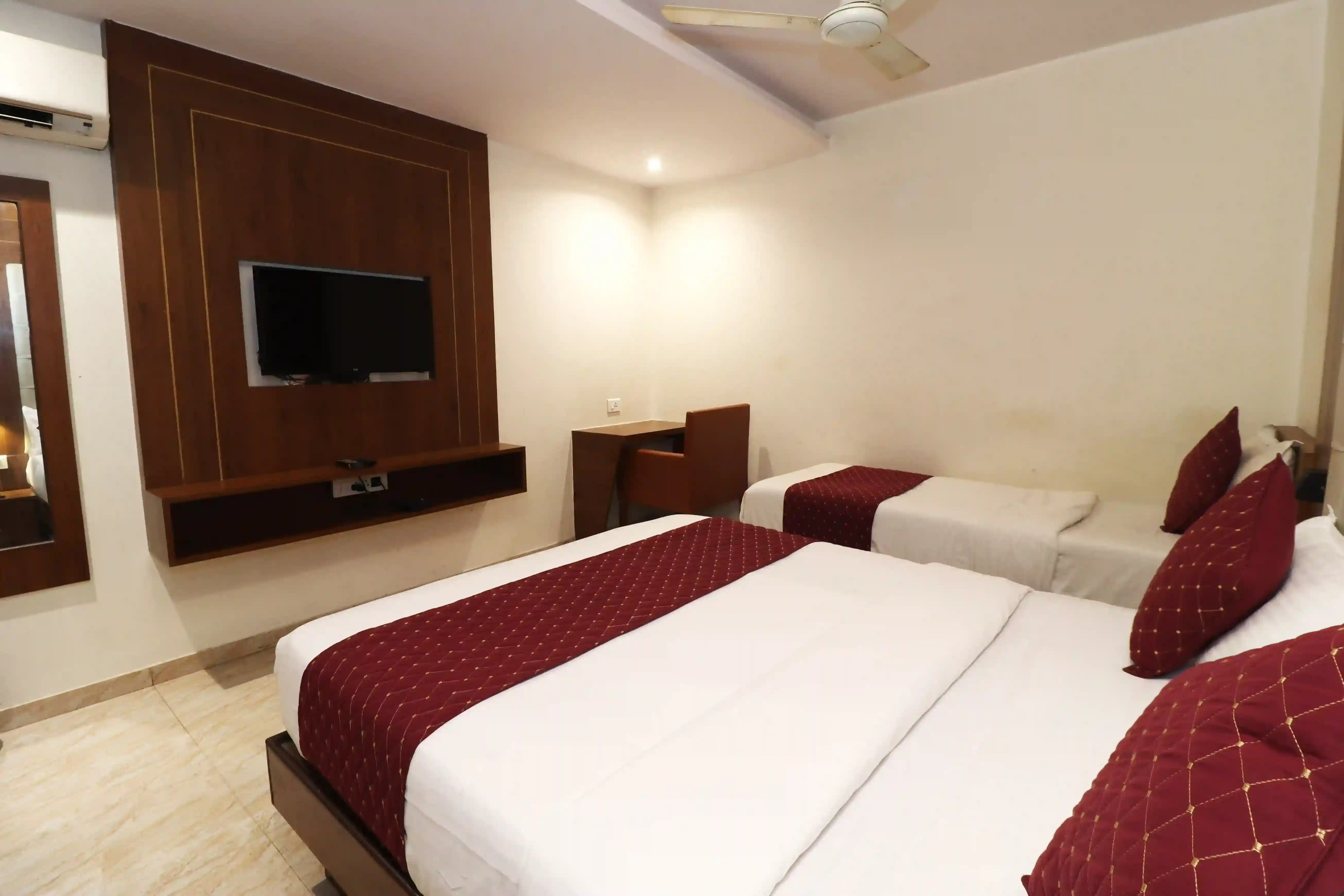 Spacious, welcoming, and well-equipped, our Family Room is designed for guests traveling with children or in small groups. The room features multiple beds, extra storage space, and a layout that ensures everyone’s comfort. Whether you're on a family vacation or attending a wedding in Mumbai, our Family Room makes you feel at home. For families searching for the best hotel near Mumbai Airport, this room is the perfect blend of affordability and convenience.